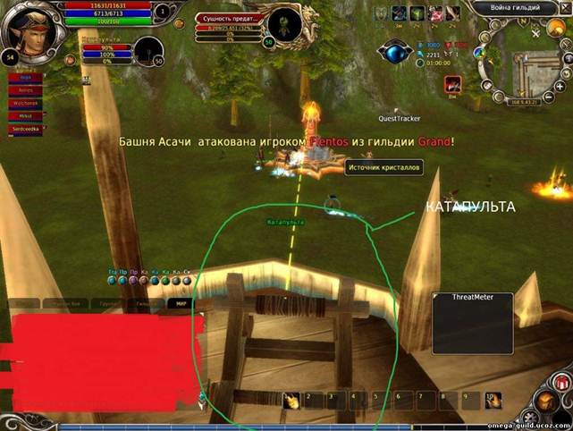 Мы оказываемся внутри нашего замка гильдии возле кристалла. Кристалл – это ключевая конструкция в войнах гильдии. Если противник его захватит, то у гильдии есть всего 5 минут чтоб его отбить, в противном случае ей будет засчитан проигрыш. Кристалл охраняется башней, обладающей огромной мощностью (если у вас меньше 10к хп даже не пытайтесь к ней подойти).